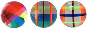 ● 多彩なカラ―を活かした球体 クリア球体に6色のカラー板を縦、横に挟みこむと、こんな魅力的な球体が誕生します。 |